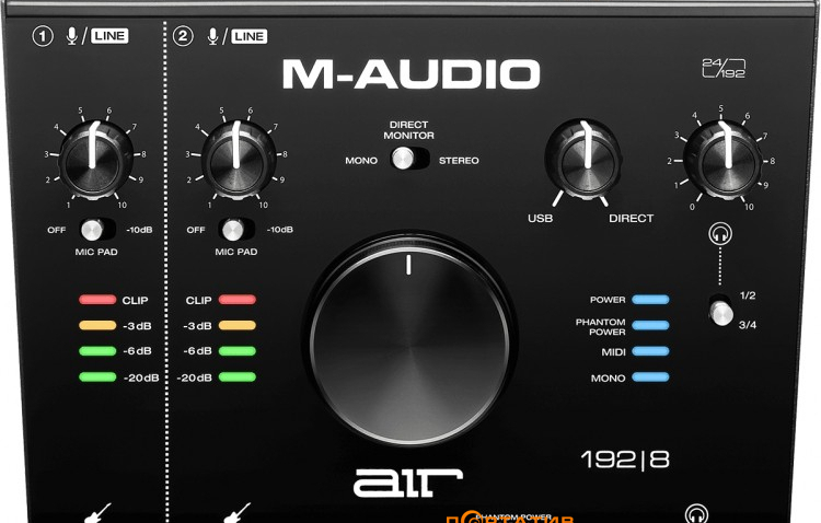 • Кнопка прямого мониторинга. Позволяет слушать сигнал без задержки, что важно для вокалистов.
